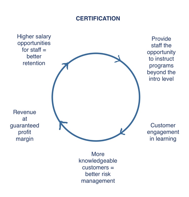 I think most folks who find themselves working in climbing gyms feel this same desire to challenge themselves, reach the next level, whether that is a climbing grade or a greater level of understanding. Sharing with others what one is passionate about can create an incredibly fulfilling job. By giving certifications to your staff, the opportunity to challenge their understanding and get certified can drive greater interest in sticking around to work in the industry.